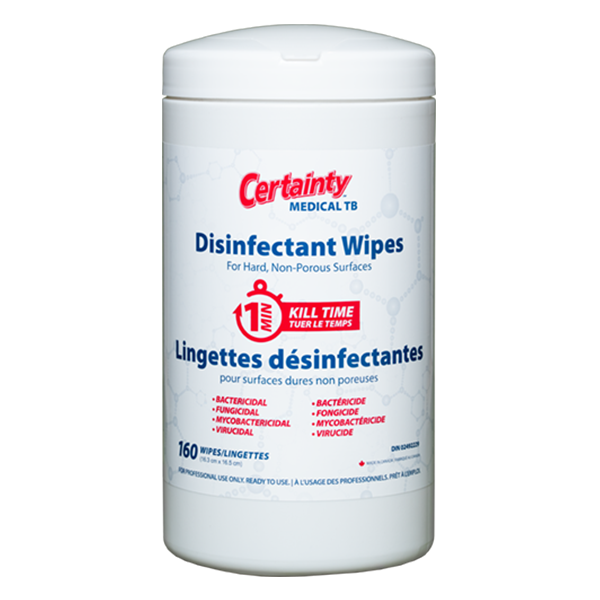 Certainty® Medical TB Disinfectant Wipes are specially formulated for rapid disinfection of hard, non-porous surfaces in just 1 minute! Our fast-acting, ready-to-use wipes eliminate bacteria, fungi and viruses including mycobacterium, one of the most difficult microorganisms to kill. Ideal for medical clinics, doctor offices, long term care homes, and more.